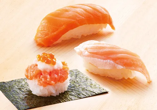 サーモンづくし(国産サーモン・サーモンハラス・サーモンいくら手巻き)